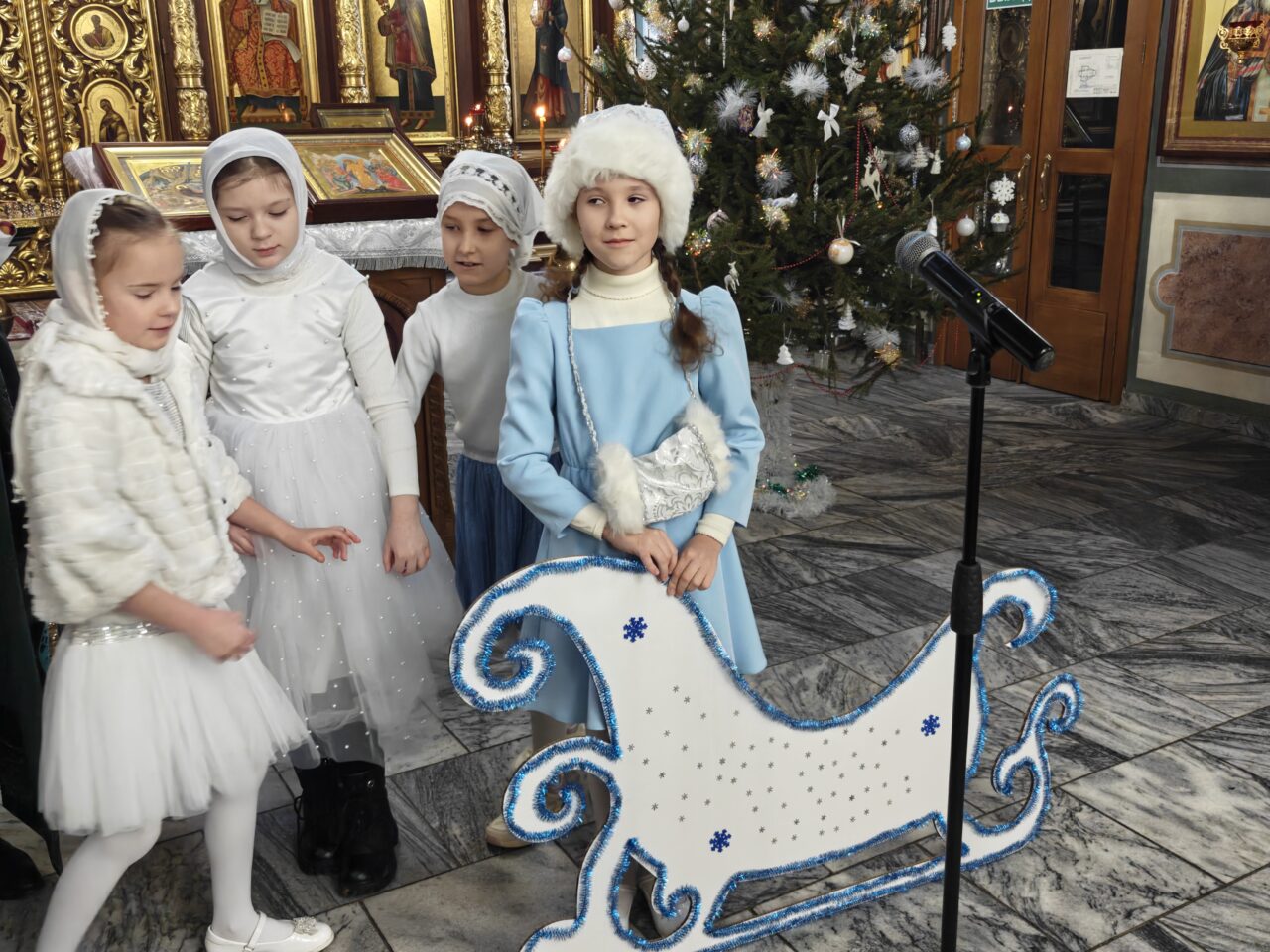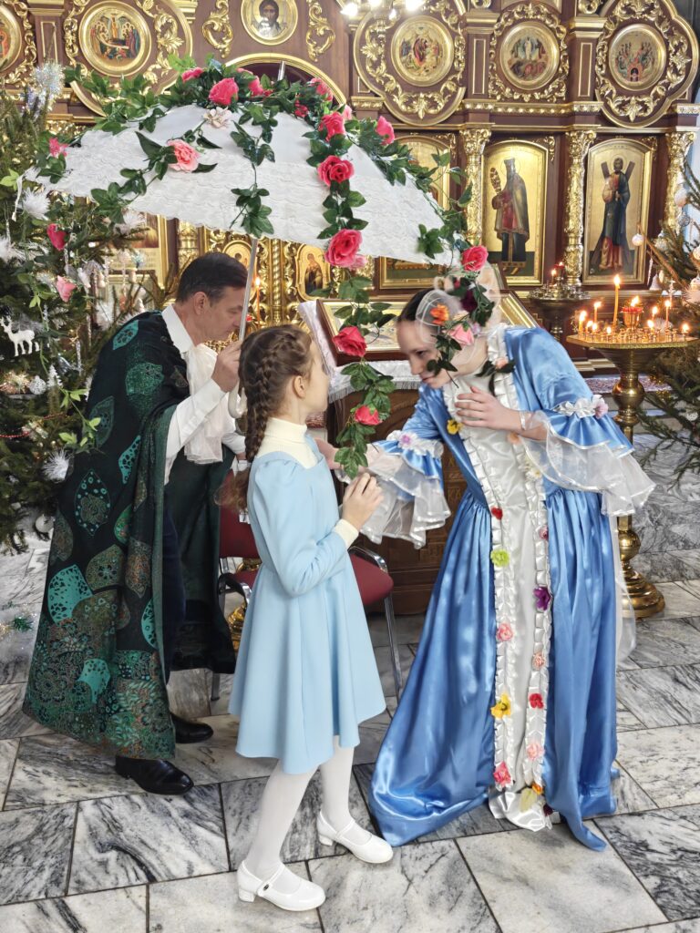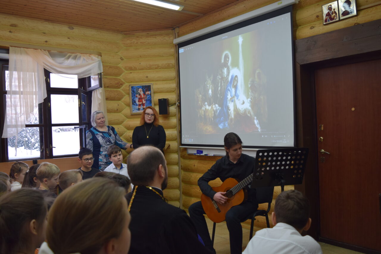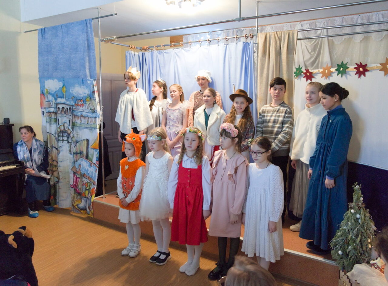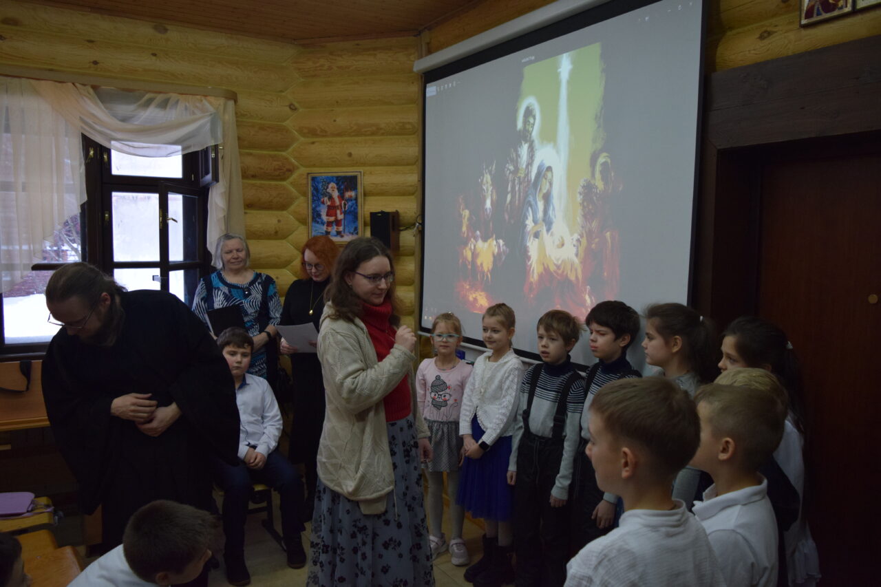 11 января в Знаменском храме пос. Дубровицы состоялся Рождественский праздник воскресной школы. Под руководством молодых преподавателей, участников молодежного клуба «ИХТИС» ребята подготовили стихи, рождественские колядки и небольшой спектакль по сказке Сельмы Лагерлеф «Колодец мудрецов». Главная мысль произведения в том, что поклониться Божественному младенцу могут только те, кто достиг чистоты души через смирение и покаяние.