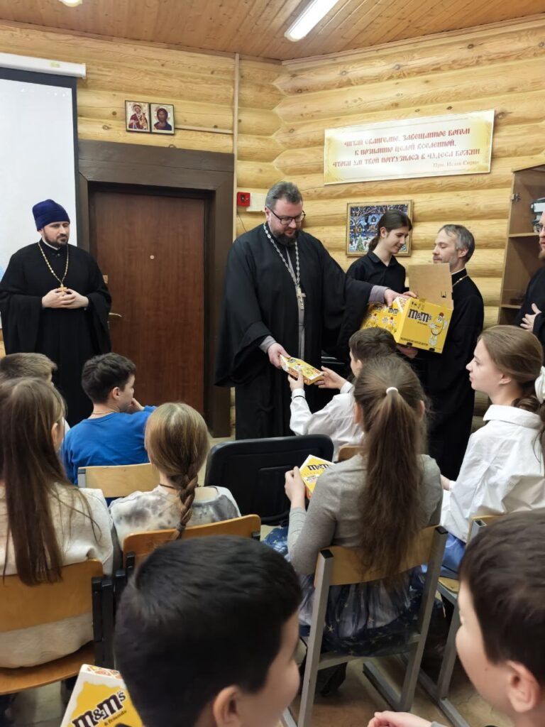 Настоятель Знаменского храма протоиерей Андрей Грицышин поздравил всех ребят с праздником Рождества Христова, поблагодарил всех, кто потрудился и вручил детям рождественские подарки.