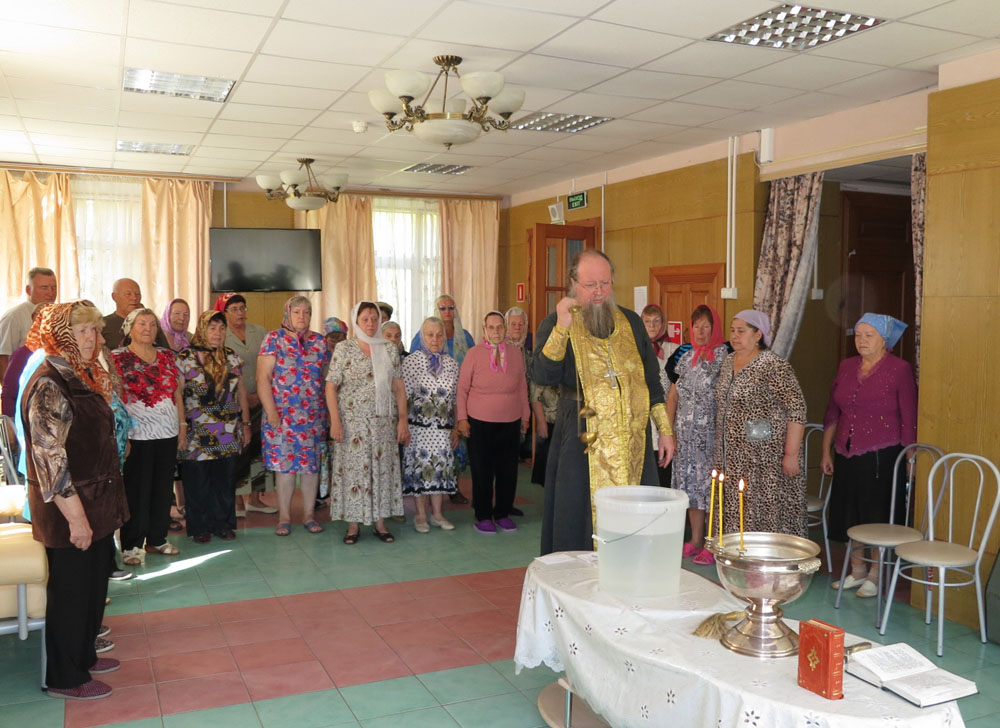 Настоятель Всехсвятского храма г.Климовска игумен Феодор (Яблоков) посетил социально-реабилитационный центре «Надежда» и свершил водосвятный молебен о здравии всех проживающих и находящихся на излечении здесь пожилых людей. После молебна состоялась беседа о прошедшем великом Празднике Успения Божией Матери. Со вниманием и последующей большой благодарностью была выслушана эта беседа.