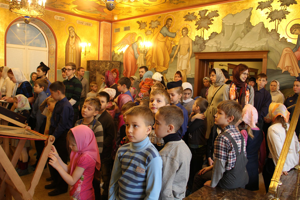 Очень слаженно пел детский церковный хор под руководством С.И. Бартеньевой. Псаломщиками были тоже дети-ученики старших классов, подготовленные учителем по церковно-славянскому языку Т.П. Кучериной. Более тридцати детей вместе с учителями причастились Святых Христовых Таин. Все молящиеся были преисполнены духовной радостию.