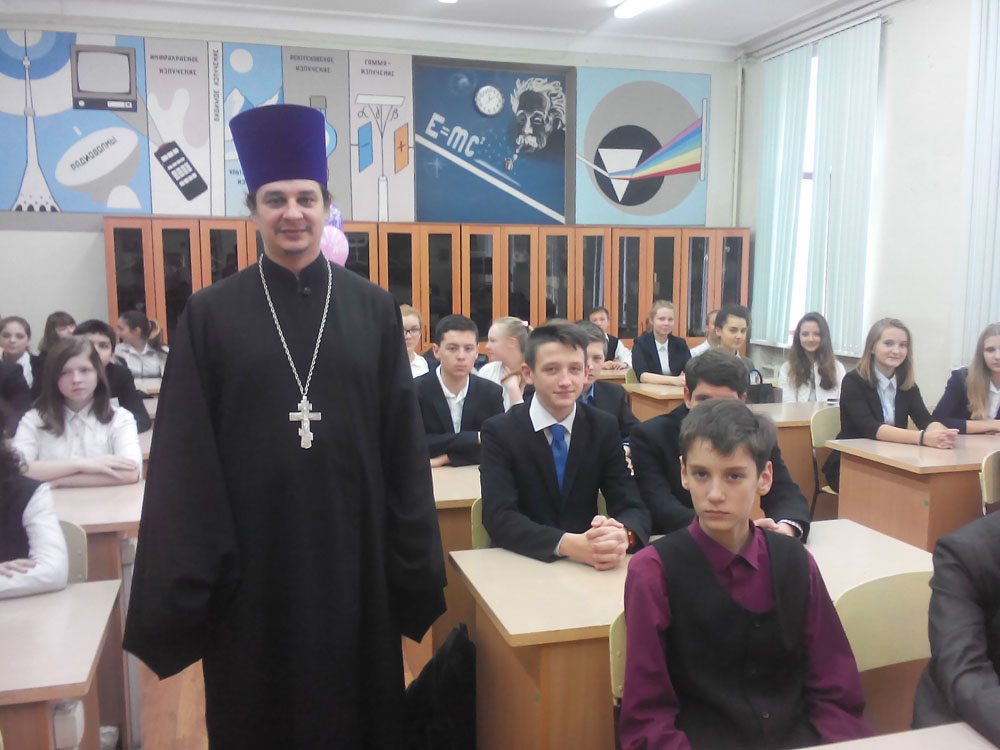 26 октября настоятель Георгиевского храма города Подольска священник Александр Никитин провёл миссионерскую беседу для старшеклассников в лицее №1. Священник рассказал об образе и подобии Божием в человеке, о силе таинства Покаяния и истолковал избранные классические произведения в свете христианского благочестия.
