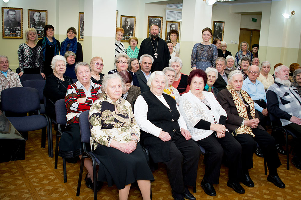 3 ноября, накануне Праздника Казанской Иконы Божией Матери и государственного праздника Дня народного Единства сестры Георгиевского сестричества милосердия с настоятелем Благовещенского храма с.Матвеевское священником Андреем Саломасовым посетили подольский Дом Ветерана.Для бабушек и дедушек устроили праздничный концерт, перед началом которого отец Андрей вместе со старшей сестрой Георгиевского сестричества Евгенией Cамоделкиной рассказали об истории Казанской иконы Божией Матери, после чего батюшка благословил присутствующих и сказал много тёплых слов в адрес ветеранов. Приглашенный церковный хор открыл концерт песнопением, посвященным Богородице «Не имамы иныя помощи», после которого спел несколько песен и сыграл на гитаре певец Никита Лиман. Русские народные песни спела регент Георгиевского храма Екатерина Островская, и несколько замечательных мелодий на аккордеоне сыграл Андрей Довбыш. Бабушки и дедушки радовались, подпевали, а некоторые даже пустились в пляс. Завершился концерт церковным песнопением, так же посвященным Пресвятой Богородице. На память было сделано общее фото.