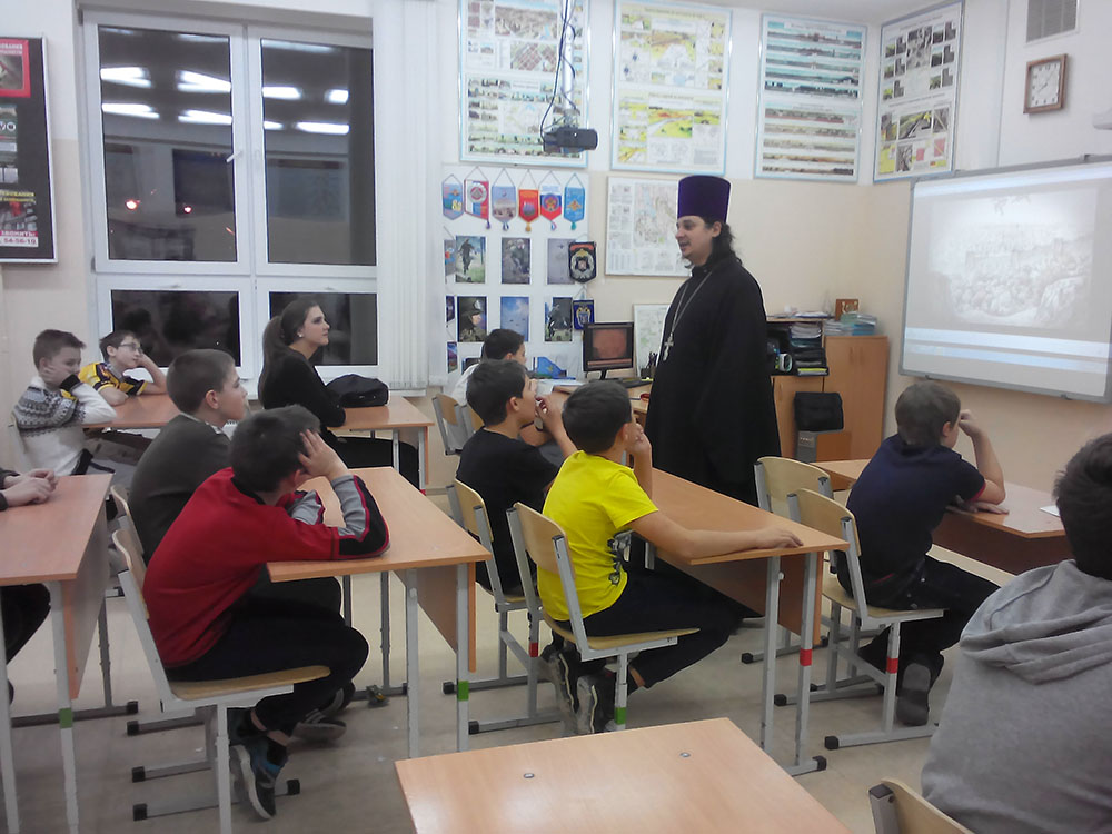 9 декабря настоятель Георгиевского храма города Подольска священник Александр Никитин провёл православный урок в центре нравственного и военно-патриотического воспитания молодёжи, рассказав ребятам о притчах Христовых. Представительница Георгиевского сестричества Неонилла Довбыш рассказала ученикам о христианской нравственности.