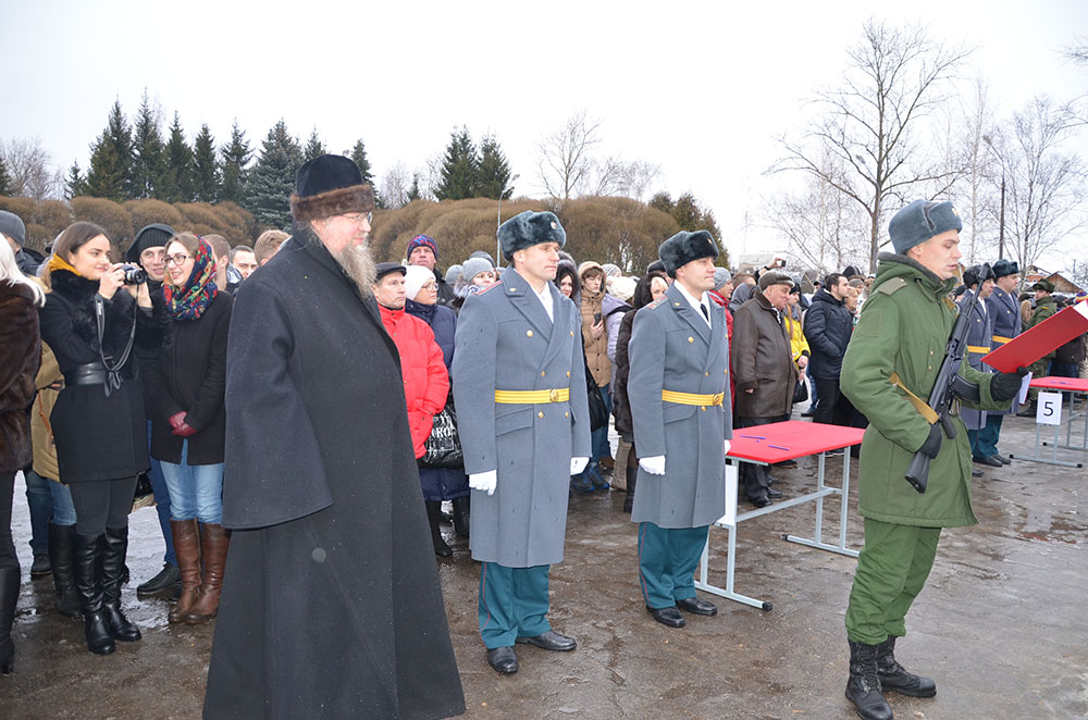19 декабря в войсковой части г. Климовска около 150 солдат — молодое пополнение части — торжественно приняли присягу на верность служения Отечеству. На торжественном мероприятии было очень многочисленно — к ребятам в этот день впервые после месяца разлуки приехали родные и друзья — более 400 человек. Для принятия присяги молодые воины выстроились по взводам, и каждый торжественно зачитал текст присяги. После Гимна России молодых солдат по-отечески поздравил командир части полковник И. А. Рытенков. Затем с напутственным словом к новобранцам обратился настоятель храма Всех святых г. Климовска игумен Феодор (Яблоков), много лет окормляющий эту войсковую часть. Выступили также представители администрации города, родителей и молодого пополнения. Закончилась торжественное мероприятие парадным прохождением воинских подразделений части.