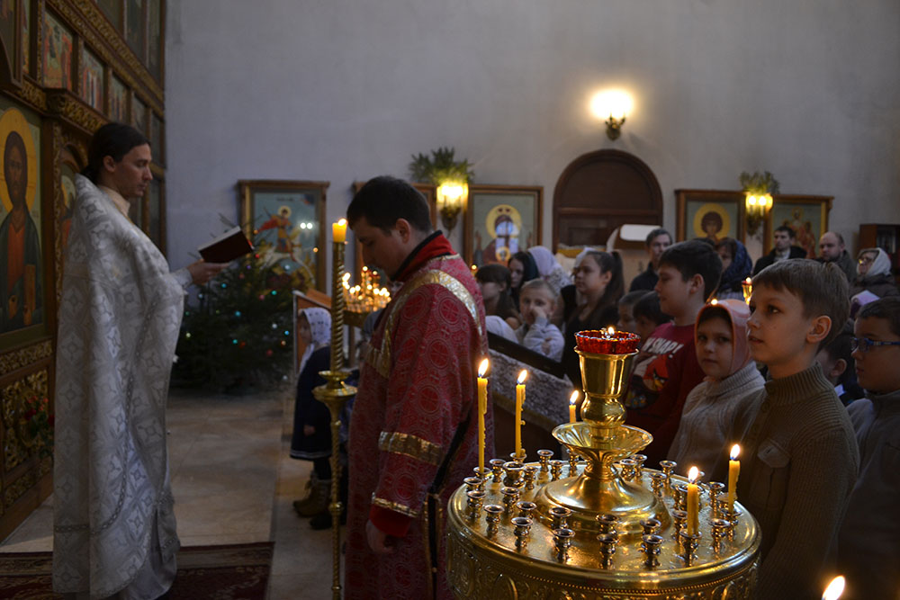 Первое субботнее утро по Рождестве Христовом в храме священномученика Александра Подольского традиционно знаменуется детским Рождественским праздником. 2016 год не стал исключением. 9 января была совершена Литургия, специально ориентированная на детей. Дети, пришедшие на богослужение, приняли участие в самом главном Таинстве Церкви – Таинстве Евхаристии. После службы состоялось праздничное представление, которое было организовано преподавателями и учениками воскресной школы. Переложенная на стихи привычная с детства народная сказка «Колобок» в Рождественской интерпретации заиграла новыми красками. Хорошо подобранное музыкальное сопровождение, яркие костюмы и красивые декорации – всё это сыграло важную роль в праздничной постановке. Приятным завершением детского Рождественского праздника стали сладкие подарки, которые были вручены каждому пришедшему в храм.