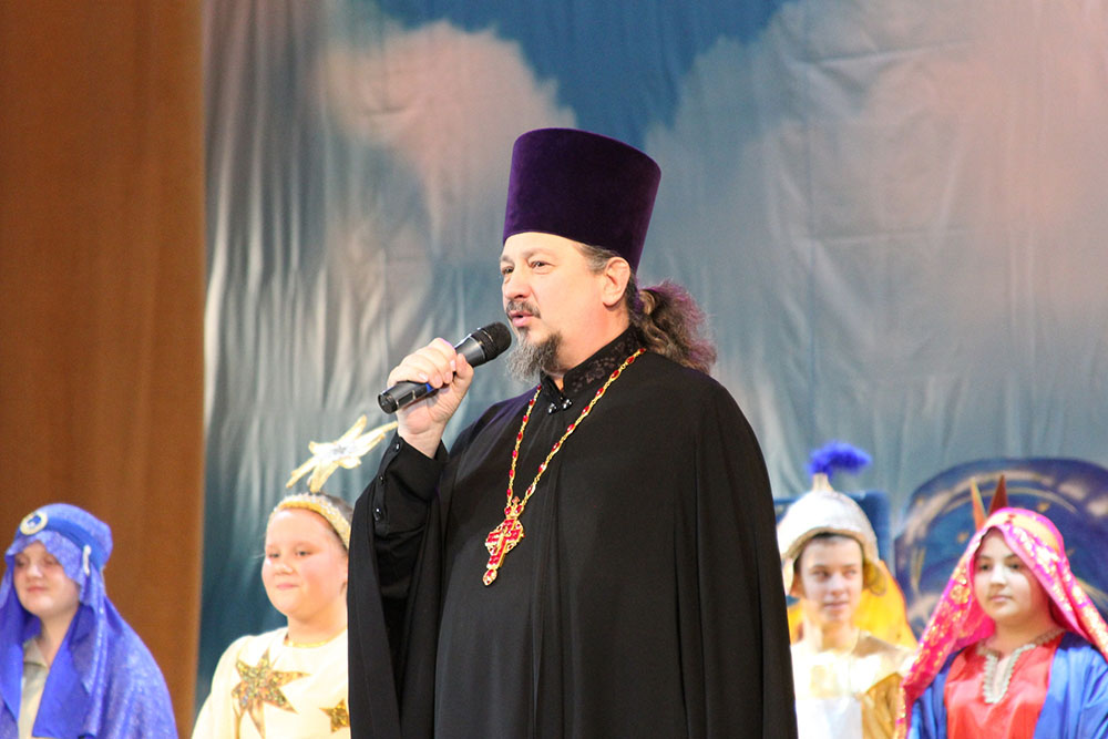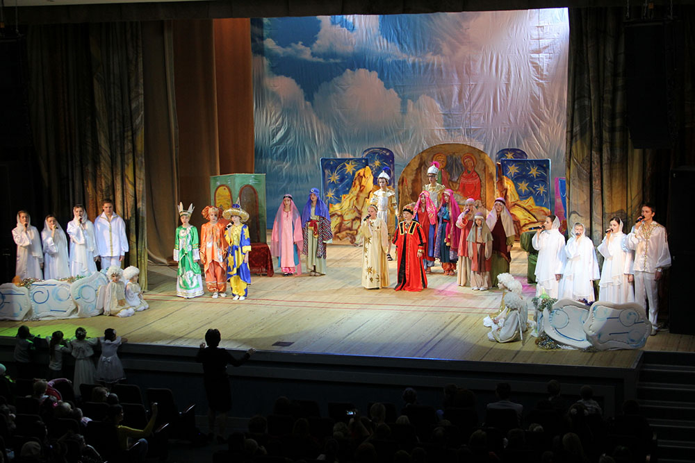 IMG_166717 января в ДК «Октябрь» прошел Рождественский праздник Воскресной школы храма Воскресения Христова. Вместе с учениками школы радовалось рождению Богомладенца большое количество детей из многодетных семей, присутствовали зрители с ограниченными возможностями, а также прихожане храма. Веселые аттракционы, конкурсы были предложены ребятам организаторами Благотворительного фонда «Добрые дела». Это забавное действо происходило в фойе. Далее праздник продолжила концертная программа и спектакль «Рождество». Веселые песни в исполнении младшего хора «Перезвоны» (руководитель Павлова С. В), вокальных ансамблей старших классов и выпускников Воскресной школы (руководитель Скрипко Н.В), красочные танцы хореографического кружка «Топотушки»(рук. Ефремова О.В) радовали многочисленных зрителей в этот праздничный день. С большим интересом дети от мала до велика следили за действием спектакля на евангельский сюжет о Рождестве нашего Спасителя Господа Иисуса Христа в постановке театральной студии»Вербочки»( руководитель Ефремова О.В.) По окончании праздника детишки получили сладкие подарки от благодетелей Фонда. Настоятель храма Воскресения Христова протоиерей Олег Сердцев высоко оценил старания маленьких артистов и поздравил всех с Рождеством Христовым.