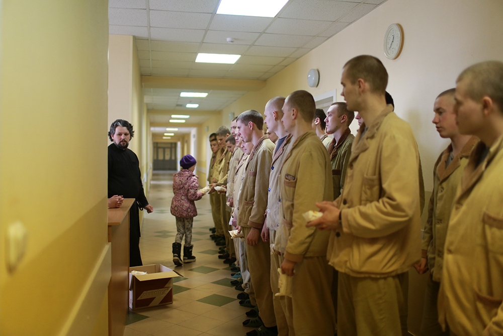 23 февраля прихожане Ильинского храма в Лемешеве Подольского благочиния посетили Подольский военный госпиталь, чтобы поздравить находящихся на лечении солдат с Днем Защитника Отечества и вручили им сладкие подарки.