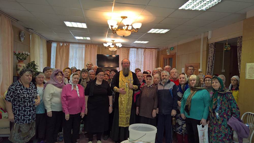 WP_20160229_15_44_34_Rich1 марта в cоциально-реабилитационном центре для пожилых людей «Надежда» состоялась встреча с настоятелем Всесвятского храма г.Климовска игуменом Феодором (Яблоковым). Священник рассказал вновь прибывшим в Центр проживающим о грядущих православных праздниках, о подготовке к Великому посту, отслужил водосвятный молебен и провел духовную беседу о христианской жизни.