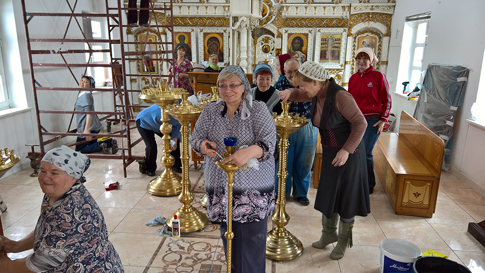 На Вербной неделе в Всехсвятском храме мкр. Климовск был проведен внутренний ремонт. По многолетней традиции все труды были проведены исключительно прихожанами храма. С большой готовностью и любовью многочисленные прихожане откликнулись на призыв помочь в этом святом деле и за несколько дней привели храм в отличное состояние ко грядущему Празднику Пасхи.