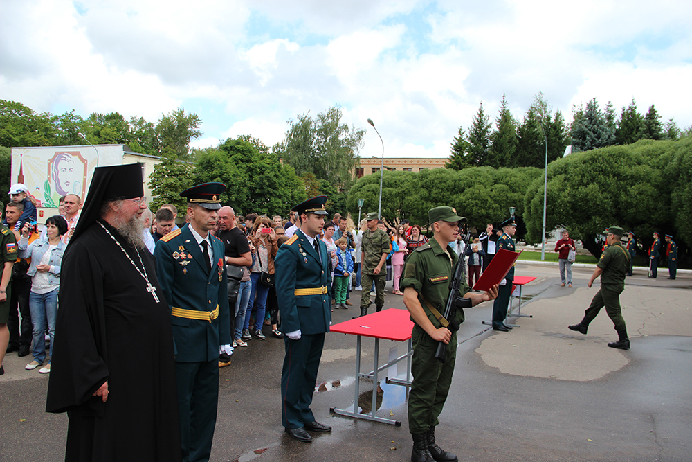 IMG_071123 июля в войсковой части № 34608, расположенной близ г. Климовска, около 150 солдат — молодое пополнение части — торжественно приняли присягу на верность служения Отечеству. На торжественном мероприятии было очень многочисленно — к ребятам в этот день впервые после месяца разлуки приехали родные и друзья — более 400 человек. Для принятия присяги молодые воины выстроились по взводам, и каждый торжественно зачитал текст присяги. После Гимна России молодых солдат по-отечески поздравил командир части полковник И. А. Рытенков. Затем с напутственным словом к новобранцам обратился настоятель храма Всех святых г. Климовска игумен Феодор (Яблоков), много лет окормляющий эту войсковую часть. Выступили также представители администрации города, родителей и молодого пополнения. Закончилась торжественное мероприятие парадным прохождением воинских подразделений части.