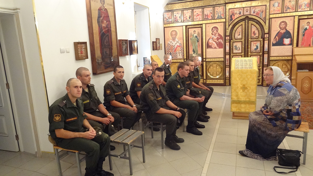 В воинской части, расположенной вблизи г.Климовска, которую окормляет уже много лет настоятель Всехсвятского храма г.Климовска игумен Феодор(Яблоков), после летнего перерыва возобновились катехизические беседы для солдат. Беседы посвящены основам православного вероучения и практическим сторонам жизни христианина-воина. Беседы с бойцами проводит штатный катехизатор Всехсвятского храма г.Климовска Денисова Н.А. Приходящие на беседы солдаты проявляют большой интерес к затрагиваемым темам и задают много вопросов.