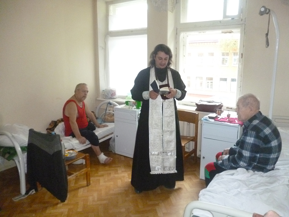 24 сентября Настоятель храма Св. Вл. Георгия Победоносца О. Александр Никитин совместно с Георгиевским сестричеством милосердия посетили отделения термической травмы и гнойной хирургии Подольской городской больницы № 2. Сестры и братья вновь привезли для болящих освященную воду и духовную литературу. Нуждающимся были розданы нательные крестики и иконки. В каждой палате сестры и братья общались с болящими, отвечали на вопросы, писали записки о здравии. Отец Александр совершил Таинства исповеди и Причастия над 13 болящими. По совершении Таинств батюшка поздравил причастников с принятием Святых Христовых Таин, пожелал крепости душевной, не унывать и надеяться на Божию помощь.