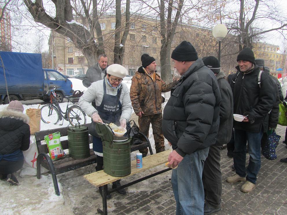 10 февраля Подольское благочиние посетили руководитель направления помощи бездомным синодального отдела по церковной благотворительности и социальному служению Кусков И.В. и руководитель православной службы помощи бездомным «Ангар спасения» Скоросов Р.С. Начало встречи было положено в подмосковной усадьбе Дубровицы. Жемчужина этой усадьбы — Церковь Знамения Пресвятой Богородицы, что построил князь Борис Голицын на месте слияния Десны и Пахры. Замечательную экскурсию провел иерей Алексей Втулов. Дальше гости посетили кормление бездомных на станции Подольск и попробовали, приготовленный постоянным помощником Андреем, обед для подопечных. В 15.00 началась запланированная встреча в Воскресенском храме, на которой присутствовали священники Александр Рульников и Алексей Втулов, социальные работники и волонтеры Подольского благочиния. Илья Кусков показал презентацию о видах и методах работы с бездомными, фильм о том, что делают в других регионах по данному вопросу. Роман Скоросов всем рассказал о практической работе в «Ангаре спасения». Встреча получилась очень интересной и полезной для присутствующих. Гости также оставили нам учебно-методическую литературу и справочники, что поможет в социальной работе благочиния.
