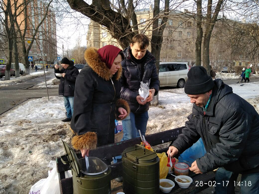 Кормление бездомных волонтёрами Георгиевского сестричества