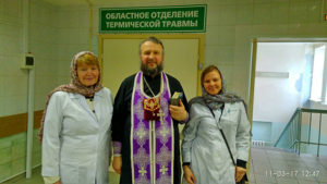 11 марта во вторую седмицу Великого Поста настоятель храма Георгия Победоносца в Кутузово священник Александр Никитин и настоятель Благовещенского храма д.Матвеевское священник Андрей Саломасов посетили 2 городскую больницу г.Подольска. Вместе с братьями и сестрами Георгиевского сестричества милосердия они побывали в отделениях термической травмы и гнойной хирургии. Ребята из Сестричества раздавали святую воду и духовную литературу, общались с болящими и медперсоналом, писали записки о здравии болящих. Также в этот день удостоились принятия Таинств исповеди и Причастия 24 человека.