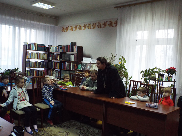 15 марта 2017 года в Подольской районной библиотеке состоялось очередное мероприятие в рамках реализации проекта «Библиотечное лукошко». Приурочено мероприятие к празднику – Дню православной книги. На встречу с ребятами приехал настоятель храма великомученика Георгия Победоносца отец Александр Никитин. Отец Александр рассказал о значении православной литературы в жизни человека, о значении чтения православной литературы для духовного и нравственного воспитания. Знакомя детей с миром православной литературы, отец Александр подробно остановился на главной из них – Библии. Ребята, даже самые маленькие, слушали интересный рассказ батюшки и активно участвовали в диалоге. Так же на встрече разговор шел и об истории возникновения книгопечатания на Руси, о первопечатнике Иване Федорове и его «Апостоле». А на практической части мероприятия ребята сами нарисовали и изготовили свою православную книгу. На мероприятии присутствовали 26 человек: 13 детей и 13 взрослых. Отец Александр передал в дар библиотеке 12 экземпляров книги игумена Никона «Письма духовным детям».