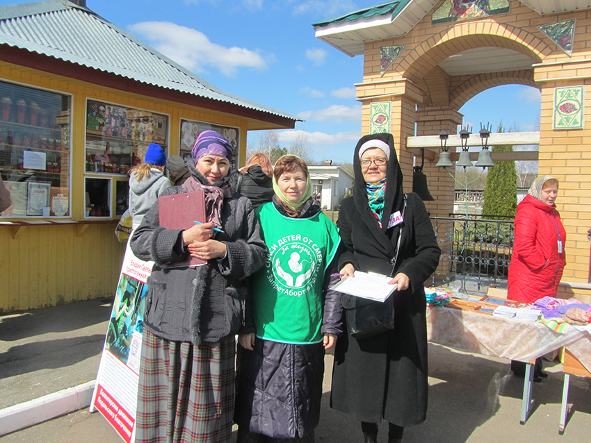 В Великую Субботу при храме Всех святых в дер. Сергеевка на освящении пасх, яиц и куличей добровольцы волонтерского движения Подольского благочиния «Милосердие – Подольск» при помощи прихожан храма провели сразу две акции: благотворительную ярмарку по сбору средств на лечение от тяжелого недуга Сеелева Владика, 6 лети сбор подписей в защиту жизней нерожденных младенцев. В результате обращение граждан за запрет абортов подписали 350 человек и 30 тыс. руб. собрано на лечение ребенка! Огромная благодарность всем добровольцам и неравнодушным людям!