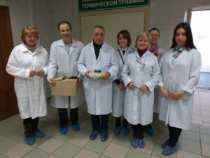 В Великую субботу (15 апреля) сестры и братья Георгиевского семтричества милосердия храма Святого Георгия Победоносца поздравили болящих отделения термической травмы и гнойной хирургии Подольской городской больницы №2 с наступающим праздником Воскресения Христова. Чтобы поднять настроение больным, подарить ощущение Великого Праздника, всем были подарены освященные крашеные яйца, куличи и сладости. Конечно, сестры и братья вновь привезли освященную воду, по просьбам болящих, раздали нательные крестики и духовную литературу, написали записки о здравии, передали в отделения пеленки и памперсы. Спасибо всем нашим помощникам и жертвователям, без которых наша поездка не была бы такой праздничной.
