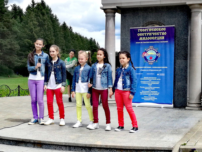 17 июня 2017 года на Поляне в Кутузово прошёл ежегодный Праздник — День Благотворительности «Белый Цветок», организованный Георгиевским сестричеством милосердия. Открыл мероприятие настоятель Георгиевского храма священник Александр Никитин. День Благотворительности «Белый Цветок» имеет вековую историю и в России был поддержан Императором Николаем 2 и его супругой Императрицей Александрой Фёдоровной, целью этого праздника было оказание помощи болящим туберкулёзом, который был очень распространён в те года. В наше время «Белый Цветок»был возрожден в 2011 году православной службой помощи «Милосердие» при Марфо-Мариинской обители. Также с 2011 года этот прекрасный Праздник в Подольске организовывает Георгиевское сестричество милосердия. По традиции все средства, собранные на этом мероприятии направляются в помощь болящим детям Подольска. В этот раз сбор был для подольчанина — двухлетнего Богдана Макарова, малыша из многодетной семьи. Богдан — удивительный, светлый и улыбчивый ребёнок. Случилось так, что он родился на несколько месяцев раньше срока, в связи с чем получил серьёзные патологии. Малыш не может крепко держать голову, сидеть, полноценно принимать пищу, имеет диагноз дцп и проблемы с сердцем.После удачной реабилитации Богданчик начал переворачиваться на бочок. Вылечить малыша на 100% нельзя, но улучшить качество его жизни реально! Мы надеемся, что он сможет сидеть, держать голову, держать руками предметы. Наша цель — отправить Богдана в Китай. У семьи не хватает средств, так как помимо Богдаши есть ещё трое деток. Сегодня Георгиевское Сестричество милосердия проводило акцию в помощь этому мальчику и благодарит всех участников мероприятия — детскую вокальную группу «SK-Stars», певицу Елизавету Градинарь, певиц из МЦ «Ровесник» Анастасию и Наталью , певцов Анатолия Раппа и «профессионального подольчанина» автора и исполнителя Евгения Смирнова, дуэт Веры и Касьяна Сурковых, а также прекрасную Татьяну с огромными детскими раскрасками Тандари, организацию «Большая Семья Большого Подольска» и ее руководителя Ольгу Лебедеву за развлечение деток воздушными шарами, руководителя ЦЗМ «Ева» Василия Антонова за помощь, детский клуб «Калинка» и руководителя Екатерину за аквагрим для детей, мотоклубы «Ночные Волки-Подольск» и «Бизоны» за поддержку и участие, а также катание ребятишек на своей чудо-технике. Спасибо прихожанам Георгиевского храма и лично Нине Румянцевой и Евгении Фильчагиной за поделки для нашей благотворительной ярмарки. Сегодня на акции мы собрали 19. 653 рубля, из которых 17.563 были переданы маме Богдана Галине и 2.100 нашим друзьям — детскому клубу родителей деток-инвалидов «Шаг Навстречу», предоставившим свои поделочки для ярмарки, чтобы собрать немного средств на пособия для деток. Благодарим всех неравнодушных и милосердных людей. Спаси Бог!