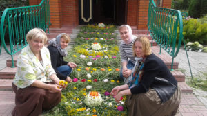 27 августа перед всенощной прихожане храма Благовещения Пресвятой Богородице украсили храм и территорию вокруг в честь великого праздника- Успения Божьей Матери. В этот день в знаменитом Свято-Троицком Серафимо-Дивеевском монастыре существует благочестивый обычай- украшать узорами из цветов Святую Канавку. Так как наш храм посвящен Божьей Матери, то появилась идея силами прихожан создать такую же красоту в честь этого светлого праздника. Над созданием «нашей Канавки» трудились и взрослые, и дети. Сколько же было радости у всех! Даже проезжающие мимо храма машины останавливались и люди выходили, фотографировали, улыбались. А когда пошли Крестным ходом вокруг храма, все с замиранием сердца смотрели на отца-настоятеля, что по узорам из трав и цветов нес Плащаницу на своих руках.