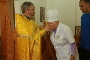 29 августа в Попразднство Успения Пресвятой Богородицы, Перенесения из Едессы в Константинополь Нерукотворного Образа (Убруса) Господа Иисуса Христа, а также в день мученика Диомида (врача), протоиерей Петр Дынников настоятель Ильинского храма в Лемешеве (с.Лемешово) Г.О. Подольска, Подольского благочиния и домового храма свт.Луки Крымского и Симферопольского (Войно-Ясенецкого) при Подольском военном клиническом госпитале отслужил в госпитале Божественную литургию, исповедав и причастив всех верных.