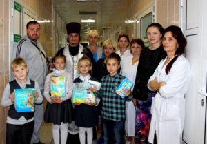 В День Праздника Воздвижения Креста Господня настоятель Георгиевского храма священник Александр Никитин, старшая сестра Георгиевского Сестричества Самоделкина Евгения, руководитель центра патриотического воспитания молодёжи «Ангелы» Сергей Медведев, а также классный руководитель 2Б класса школы №30 Елена Геннадьевна с четырьмя учениками и их родителями в очередной раз посетили 4 ДСО ПГКБ, где на лечении находятся маленькие дети, в том числе и отказники. Встречали гостей заведующая отделением и медицинский персонал. В дар отделению были переданы 3 аппарата-стерилизатора для бутылочек и несколько пакетов с подгузниками, влажными салфетками и другими средствами гигиены для малышей. В отделении батюшка окропил все помещения святой водой под всеобщее пение тропаря Животворящему Кресту Господню. Такая совместная поездка в 4 ДСО ПГКБ со школьниками у Сестричества происходит второй год подряд. Отрадно, что дети с малых лет под чутким руководством своего педагога, учатся милосердию и помощи ближнему.