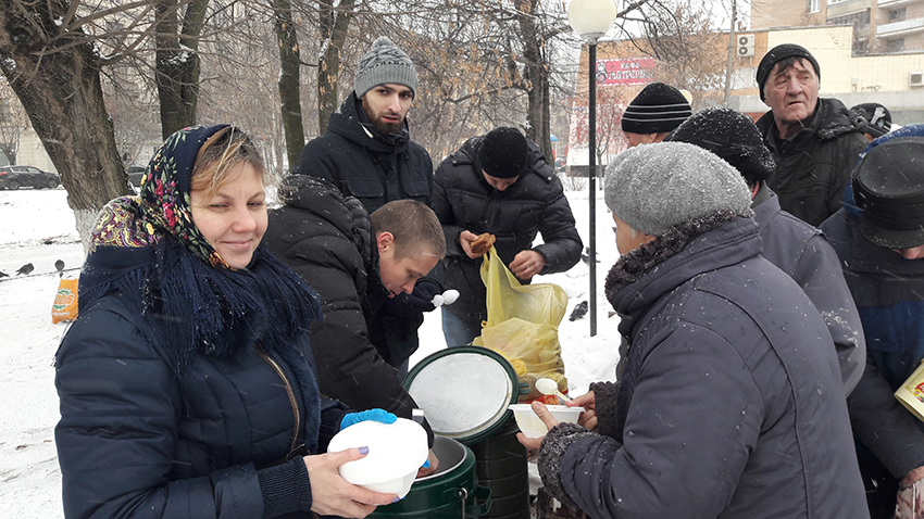 5 декабря представителями Георгиевского сестричества проводилось кормление малоимущих в Екатерининском парке г.о.Подольск. Перед принятием пищи была произнесена молитва «Отче Наш», и настоятель Георгиевского храма священник Александр Никитин поздравил присутствующих с праздником Введения во храм Пресвятой Богородицы.