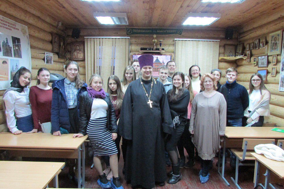 9 декабря прошла очередная встреча в «Школе Экскурсоводов» на территории храма Святого Великомученика Георгия Победоносца. В занятии приняли участие, помимо слушателей школы, студенты 2-го курса коллежда РГУТиС. Радушно встретили группу слушателей настоятель храма отец Александр и руководитель Центра духовного патриотического и нравственного воспитания Подольского благочиния «Ангелы» С.В. Медведев. Настоятель храма отец Александр рассказал о внутреннем устройстве храме, ознакомил ребят со святынями, ответил на вопросы ребят и призвал уделять больше внимания своему духовному и нравственному развитию, чаще посещать храм. С. В. Медведев рассказал ребятам о работе центра «Ангелы». В центре преподаются основы военной начальной подготовки и выживания. Центр участвует в Вахте Памяти, работает поисковый отряд. В храме создано Георгиевское сестричество, которое опекает больных в ожоговом отделении в МУЗ «Подольская городская больница №2» и является членом Ассоциации сестричеств милосердия РПЦ. Перед слушателями и студентами выступил директор МБУРМ «МЦ «Максимум» М.В. Жученко. Он рассказал о важности духовно-нравственного и патриотического воспитания молодежи, о туристическом потенциале Г.о. Подольск, о перспективах развития проекта «Профессиональные ориентиры. Школа экскурсоводов». Руководитель проекта Т.А.Кипарис провела со слушателями практическое занятие. Ребятам было предложено найти ошибки в работе экскурсовода. Надо сказать, что юные экскурсоводы блестяще справились с заданием, что очень порадовало организаторов проекта. Преподаватель РГУТиС И.А. Крапивко посвятила лекцию паломническим поездкам. Ребята познакомились с тонкостями организации и проведения паломнических туров. Ребята получили интересное домашнее задание. Встреча завершилась чаепитием. В храмовой трапезной был накрыт чайный стол. В теплой душевной атмосфере пили чай и делились впечатлениями. Отец Александр подарил на память каждому участнику сегодняшней встречи книги и диски с лекциями на богословские темы профессора Московской Духовной Академии А.И. Осипова.