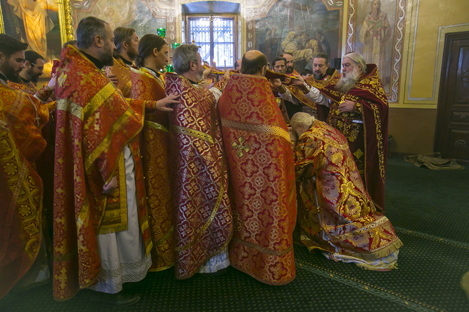 Сегодня, дорогие братья и сестры, я очень благодарен всему духовенству, которое вместе разделило радость этой Бескровной Жертвы. Сегодня сердечно благодарю всех вас, дорогие отцы, братья и сестры, за ваши молитвы, ибо без этих молитв, дорогие братья и сестры, и нам бывает тяжело. Когда необходима милость Божия, тогда только через вашу любовь и вашу молитву мы ее получаем, устремляем сердце свое к Богу. Я сегодня хочу поблагодарить Николая Игоревича за то, что он с нами вместе разделяет наши молитвы и упования, помогает храму Божию, и стремится, чтобы жизнь в городе стала лучше. Я сердечно хочу благодарить и протоиерея Олега благочинного Подольской земли, за его усердные молитвы и труды, которые он ежедневно приносит на алтарь Божий. Так каждый день, незаметно для простого глаза, но каждый, каждый, дорогие братья и сестры, священник несет свое делание. В своих молитвах и упованиях он устремляет сердце свое к Богу, за всех близких, за всех прихожан. И через эти молитвы, дорогие братья и сестры, мы получаем благословение Божие. Как мы радуемся, что настало то время, когда мы можем свободно приходить в храм Божий. Почему? Да потому, что кровью новомучеников и исповедников, дорогие братья и сестры, мы искупили свой грех богоотсупничества. Нам необходимо укреплять свою душу, разжигать в ней пламень веры. Это возможно через молитву, через пост, через Таинство Покаяния, через Таинство Причащения, которое даровал нам Господь наш Иисус Христос.
