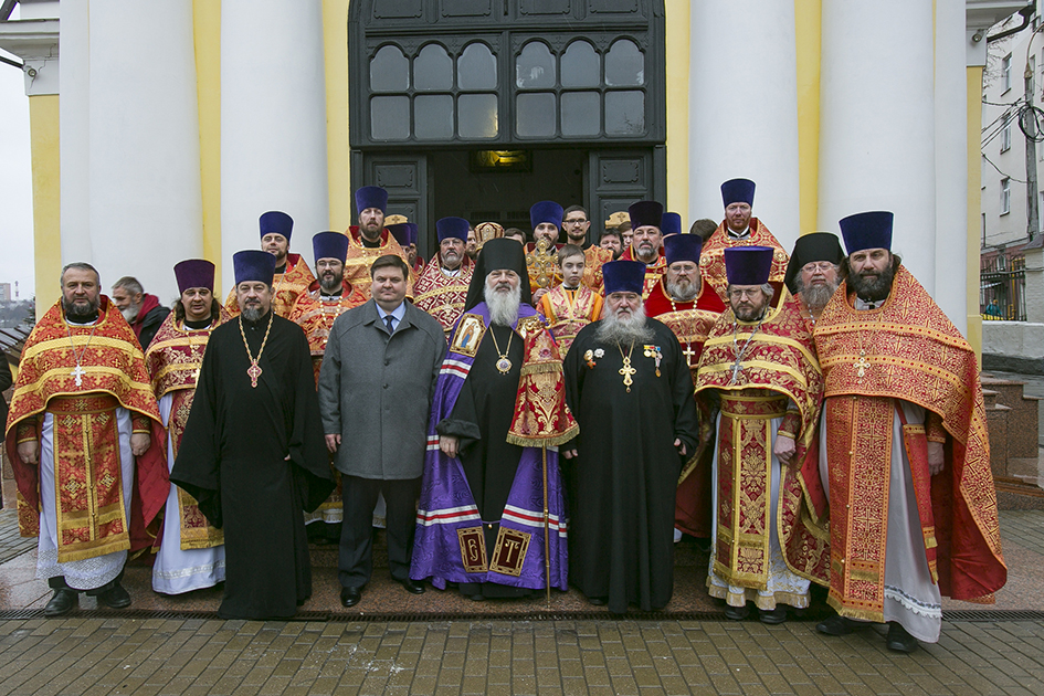 Ваше Высокопреподобие дорогой отец Александр, Ваше Высокопреподобие дорогой оотец Олег, досточтимый Николай Игоревич. Сегодня по благословению Высокопреосвященнейшего Владыки Ювеналия мне было благословлено отслужить здесь, в Подольске в Троицком соборе, чтобы прославить новомучеников и исповедников Подольских. Этот год у нас юбилейный – сто лет тому назад начались в нашем Отечестве годы гонений, когда тысячи и тысячи людей пострадали за веру Христову, за правду Божию, когда они отстаивали храмы Божии, ибо в эти годы начались не только гонения на людей, но и на все святыни, храмы Божии разрушались, а священники забирались в тюрьму и там обвинялись в преступлениях, которых они не совершали, и расстреливались.