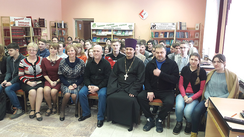 24 января настоятель Георгиевского храма Г.О. Подольск священник Александр Никитин и руководитель центра духовного нравственного и патриотического воспитания молодежи Подольского благочиния Медведев Сергей Викторович, а также воспитанники Центра приняли участие в культурно-просветительском мероприятии, которое состоялось в промышленно-экономическом колледже имени А.В. Никулина Г.О. Подольск. Священник Александр Никитин обратился к участникам и гостям мероприятия с назидательным и духовным словом. Руководитель Центра Медведев Сергей Викторович рассказал студентам колледжа о соревнованиях, которые проводятся в детско-юношеском оздоровительном лагере «Мечта» при поддержке администрации Г.О. Подольск на Кубок Подольского благочиния и пригласил принять участи команду колледжа в данных соревнованиях.