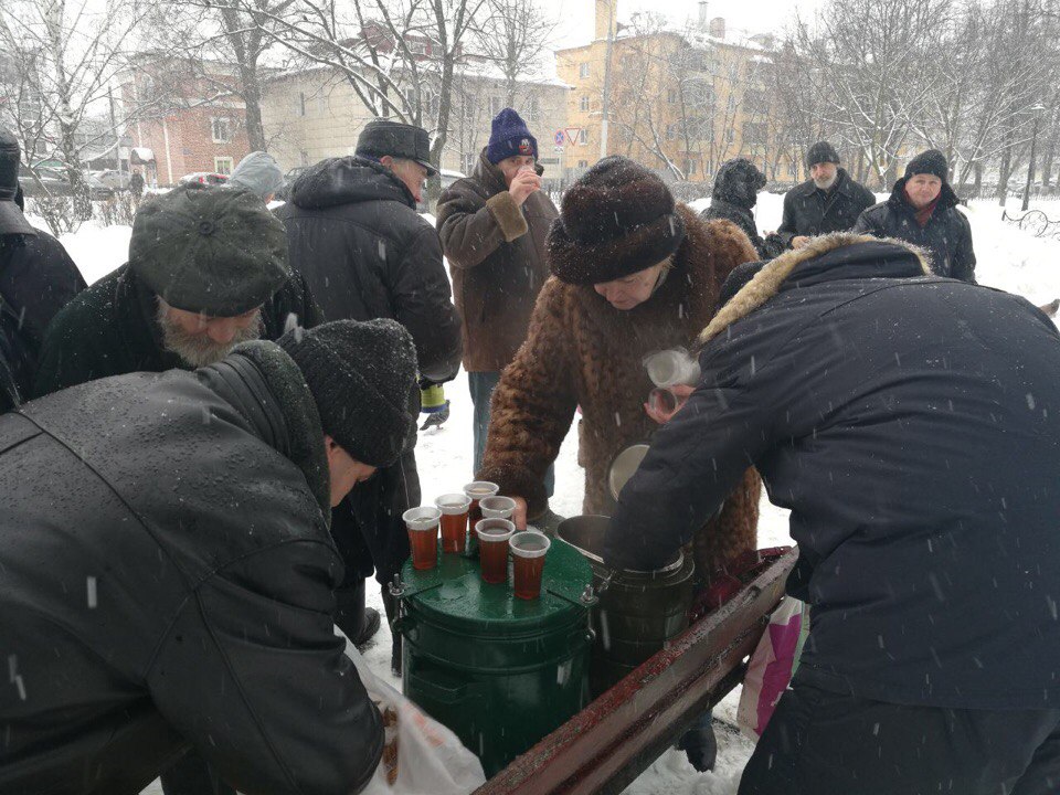 Сегодня 30 января братья и помощники Георгиевского Сестричества милосердия в свою череду раздавали питание бездомным в Екатерининском парке г. Подольск.