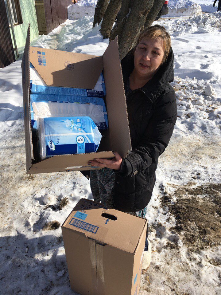 1 марта сестра Георгиевского сестричества навестила ещё одних наших подопечных — Антонину и мальчика Колю (диагноз ДЦП). Привезли 2 больших коробки с пачками подгузников (всего 10 упаковок), а также приобрели необходимую для Коли мазь от пролежней — судокрем. Благодарим С.В.Медведева за помощь и вас, друзья, за пожертвования на нашу карту!