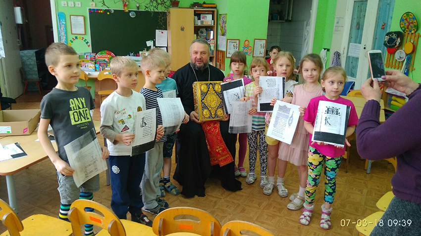 На этой неделе настоятель Благовещенского храма д.Матвеевское посетил детский сад #60 ГО Подольск и МОУ школу №13. Темой общения было предстоящее празднование Дня Православной Книги. Отец Андрей рассказывал ребятам о Православной Книге и книгопечатании в интерактивном формате- вместе со школьниками читали тексты на церковно-славянскомм языке, вместе с малышами листали Библию и рассматривали рисунки с изображением икон. Дети были в восторге и засыпали батюшку множеством вопросов. А воспитанники детсада №60 сделали отцу Андрею памятный подарок.