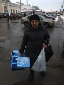 Сегодня мы, как и обещали Анжеле, встретились с ней, чтобы передать лекарства и памперсы для взрослых для ее больной слепой мамы. Так же по просьбе женщины приобрели для неё мыло, шампунь и стиральный порошок, чтобы дотянуть месяц до зарплаты. Как мы писали ранее, 9 марта у Анжелы украли кошелёк с зарплатой. Спасибо нашим жертвователям и в частности р.Б.Андрею за финансовую помощь. Храни всех Бог!