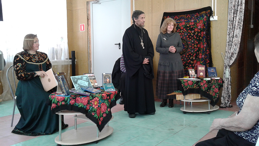 16 марта 2018 года ко Дню православной книги прошел тематический вечер «Духовных книг божественная мудрость», организованный для пациентов социально-оздоровительного центра «Надежда» г. Климовска. Встречу открыла ведущий библиотекарь библиотеки-филиала №15 Людмила Владимировна Фадеева. Она познакомила присутствующих об истории появления первой печатной книги в России, в музыкальном сопровождении библиотекаря Татьяны Борисовны Науменко, одетой в нарядный русский костюм. Настоятель храма Воскресения Словущего д. Сертякино протоиерей Борис Трещанский рассказал о православной вере, о роли книги в жизни каждого христианина, а также о посте и молитве, о приближающихся православных праздниках Благовещении и Пасхе. Ответил на разнообразные вопросы, которые прозвучали в большом количестве, так как многие из присутствующих, приехавшие сюда со всей Московской области инвалиды и пожилые люди, не всегда имеют возможность посещать храмы. На вечере была представлена книжная выставка православной литературы, обзор которой провели работники библиотеки. Количество участников на мероприятии было 22 человека.