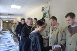 8 апреля в праздник Воскресения Христова Светлой Пасхи, протоиерей Петр Дынников настоятель Ильинского храма в Лемешеве (с.Лемешово) Г.О. Подольска, Подольского благочиния и домового храма свт.Луки Крымского и Симферопольского (Войно-Ясенецкого) при Подольском военном клиническом госпитале принес Пасхальную радость больным и медперсоналу госпиталя. Он зачитал Слово огласительное свт.Иоанна Златоуста, Пасхальное послание святейшего Патриарха Московского и всея Руси Кирилла и Пасхальное послание Митрополита Крутицкого и Коломенского Ювеналия. Затем освятив прихожанам пасхи, яйца и куличи, обошел вместе с учениками воскресной школы Ильинского храма в Лемешеве госпитальные корпуса, раздавая подарки, сделанные учениками и праздничные сладости.