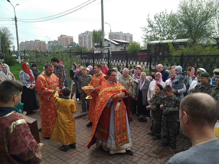 6 мая на территории Георгиевского храма состоялось торжественное построение воспитанников Центра духовного нравственного и патриотического воспитания молодежи Подольского благочиния, посвященного дню памяти святого великомученика и Победоносца Георгия. Настоятель Георгиевского храма священник Александр Никитин обратился к воспитанникам Центра и их родителям с напутственным торжественным словом, после чего возглавил служение Божественной Литургии. По окончании Литургии был совершен крестный ход с участием воспитанников Центра. Руководитель Центра духовного, нравственного и патриотического воспитания молодежи Подольского благочиния Медведев Сергей Викторович рассказал воспитанникам об образе Святого Георгия Победоносца. Святой Георгий уже не одно столетие является на Руси символом высочайшей воинской доблести и его считают покровителем нашей Армии, икону Святого Георгия можно найти в любом православном храме, а изображение битвы героя с драконом по праву украшает герб столицы нашей Родины г. Москвы. Праздничное торжество явилось ярким событием в жизни прихода и осталось светлым воспоминанием в сердцах детей и их родителей.
