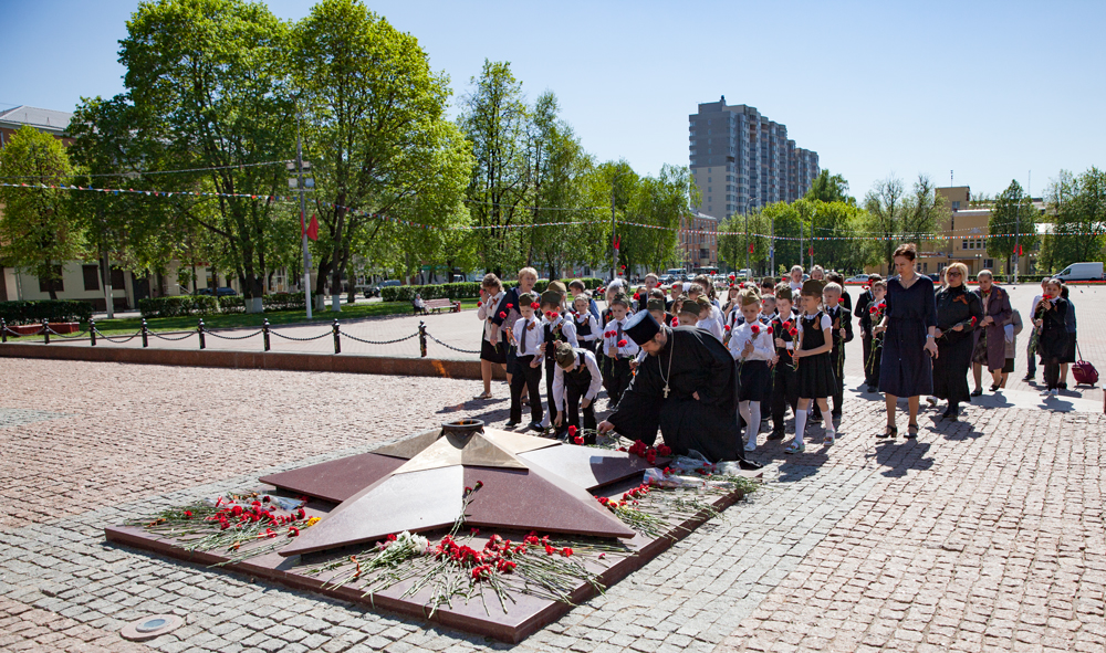 8 мая 2018 года, в преддверии Дня Победы, учащиеся Троицкой православной гимназии г. Подольска вместе с духовником гимназии иереем Константином Семеновым, директором Франко Жанной Александровной и учителями гимназии торжественно прошли от Троицкого собора к Вечному огню, который находится на площади Славы с красными гвоздиками в руках. Отец Константин обратился к ребятам с назидательным словом о воинах, отдавших свои жизни ради того, чтобы мы сейчас жили и радовались мирной жизни, о том, как важно не забывать этот великий подвиг совершенный нашими воинами во время Великой Отечественной войны. Дети возложили цветы к Вечному огню, почтив память павших в годы войны героев-подольчан.
