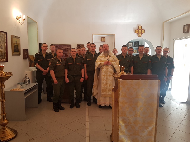 В Праздник святых Равноапостольных Мефодия и Кирилла в воинском храме св.блгв.Вел.кн.Александра Невского состоялось богослужение и беседа, посвященная славянским просветителям. Игумен Феодор(Яблоков) рассказал бойцам о духовном подвиге и значении трудов свв.Мефодия и Кирилла.