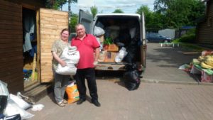 14 июня вновь приезжали добрые помощники Георгиевского Сестричества — Татьяна и Валерий, под завязку загрузили свою «Газельку» вещами из нашей благотворительной лавки «На Благо» и поехали развозить и раздавать одежду и обувь нуждающимся в деревнях Тверской области и в общежитие для беженцев. Так же мы на днях завезли нашей подопечной Алле ещё одну детскую коляску для ее знакомой семьи, ныне проживающей в городе Пушкино и тоже приехавшей из Донбасса. В этой семье есть полуторагодовалый малыш Руслан, а его мама ждёт ещё двойню. К сожалению, у Руслана нет коляски, поэтому укачивают его… в чемодане на колёсиках.. Теперь, у Руслана будет коляска! Так же Алле для сына Сашеньки, и для Руслана были переданы коробочки с кашей, за которые мы благодарим Ольгу Лебедеву из Большой Семьи Большого Подольска, и наших помощников! Слава Богу за всё!