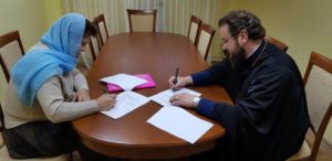 18 сентября в Кирилло-Мефодиевском храме города Подольска состоялось подписание договора о духовно-нравственном, методическом, творческом, организационном сотрудничестве между Кирилло-Мефодиевским храмом и Муниципальным дошкольным образовательным учреждением детским садом комбинированного вида №40 «Капелька». Договор подписали настоятель Кирилло-Мефодиевского храма иеромонах Сергий (Александров) и заведующая образовательным учреждением И.А. Кошеленко. На память настоятель храма иеромонах Сергий подарил И.А. Кошеленко духовные книги.