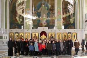 17 ноября в субботу, по благословению настоятеля Троицкого собора протоиерея Александра Ганабы, состоялась паломническая поездка прихожан, молодежи «ПРОТОСа» и учащихся Воскресной школы Троицкого собора с родителями. Группу сопровождал клирик Троицкого собора, священник Виталий Писарев. Путешественники посетили: Сретенский и Покровский монастыри г. Москвы. В Сретенском монастыре молились за Божественной литургией, а после в ходе экскурсии познакомились со святынями, среди которых мощи священномученика Иллариона (Троицкого) и копия Туринской плащаницы, а также с храмами монастыря. Особое впечатление, своим богатым убранством и величием, на паломников произвел недавно построенный храм Воскресения Христова и Новомучеников и Исповедников Церкви Русской. Затем отправились в Покровский монастырь, где паломники узнали о истории обители, и приложились к мощам почитаемой в православном мире святой блаженной Матроны Московской. Поездка произвела благостное впечатление на всех участников.