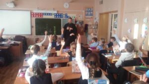 29 ноября настоятель храма Благовещения Пресвятой Богородицы д. Матвеевское священник Андрей Саломасов провел урок «Основы религиозных культур и светской этики» в Средней образовательной школе №13. На занятии присутствовали ученики 4-х классов. Повествование батюшки охватило время от рождения пророка Моисея до выхода израильтян из Египетского плена. Отец Андрей рассказал ребятам, как пророк Моисей под руководством Бога вывел Израильский народ из Египта, а также, какие знамения и великие чудеса сотворил он с Божьей помощью. Времени до звонка с урока едва хватило, чтобы батюшка ответил на все вопросы ребят.