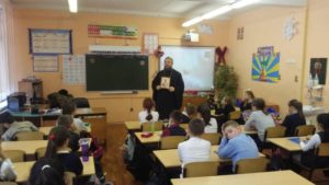 27 декабря настоятель храма Благовещения Пресвятой Богородицы д. Матвеевское священник Андрей Саломасов посетил учеников младших классов СОШ №13 г.о. Подольск. Отец Андрей рассказал ребятам о предстоящем чудесном празднике Рождестве Христовом и о том, зачем Господь пришел на землю, о Вифлеемской звезде, о волхвах, которые шли за ней, чтобы поклониться родившемуся младенцу. По окончании урока отец Андрей поздравил детей с наступающими каникулами и светлым праздником Рождества Христова и пожелал помощи Божией в учебе.