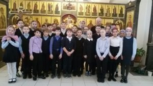 29 января ученики 4-х классов школы №6 были приглашены настоятелем храма священномученика Сергия мкрр. Климовск священником Олегом Демидовым на экскурсию в храм и на чаепитие в трапезную! Накануне учащиеся 4-х классов в курсе ОРКСЭ («основы религиозной культуры и светской этики») знакомились с устройством православного храма, с заповедями Христа, с историей появления христианства на Руси. На дополнительных занятиях узнали много ранее неизвестного о священномученике Сергии, о Бутовском полигоне, периоде репрессий в нашей стране и о Поклонных крестах как символе покаяния. Во время встреч со священниками в школе ребята расширили свои знания. И вот, наконец, «практическая работа»: воочию увидеть своими глазами, как устроен храм, познакомиться с алтарем, с алтарной преградой — иконостасом, с аналоем, кануном, увидеть воочию храмовые иконы, узнать о мощевиках, правильно подать записки, поставить свечи к иконам. Было отрадно, что ребята без труда узнали иконы, с которыми познакомились ранее: икона Подольских святых, священномученика Сергия, Сергия Радонежского – покровителя учения. В конце экскурсии – свободное время на записки и свечи. И здесь детей ожидал приятный сюрприз: батюшка подарил всем возможность поставить гораздо больше свечей, чем мы планировали первоначально за символическое пожертвование. Затаив дыхание, дети ставили свечи к иконам, желая своим близким здоровья, тихонько совещаясь, думая о добром и хорошем. Часовая экскурсия пролетела незаметно. И вот в храме к ребятам вышел батюшка и пригласил их отведать чайку в трапезной. Какой радостью горели глаза детей, когда они вместе со священником проследовали в это необычное для них помещение – трапезную храма! Не каждому выпадает такая удивительная возможность! Конечно, ни храм, ни трапезная не могли вместить одновременно всех учащихся четвертых классов! Нас 120 человек! Поэтому дети приходили по графику, разделившись по классам. В течение целого дня нас, группу за группой, очень доброжелательно встречали матушки, которые оказывали всевозможную помощь с записками, свечами, чаепитием, отец Олег и отец Александр поочередно общались с нашими учащимися. Сердечное спасибо настоятелю храма священнику Олегу Юрьевичу Демидову и клирику храма священнику Александру Дмитриевичу Орлову за теплый и радушный прием! Дети во время чаепития задавали священникам интересующие их вопросы и, конечно, получали исчерпывающие ответы. Все расходились по домам со светлыми чувствами и добрыми впечатлениями от посещения храма. Уверены, что благодаря этой встрече расположенный рядом со школой храм стал нам еще ближе и роднее!