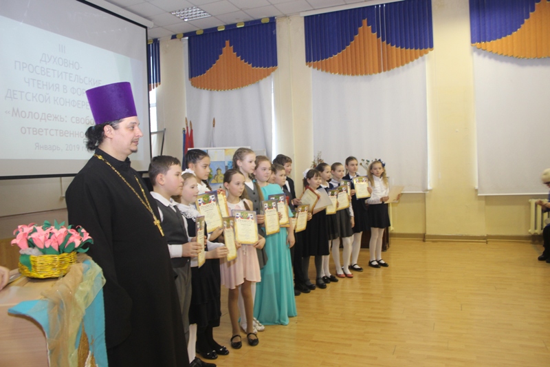 31 января в 4 гимназии мкр.Кутузово г.о.Подольск состоялась детская духовно-просветительская конференция, в которой принял участие настоятель Георгиевского храма священник Александр Никитин. Ребята из разных школ приготовили интересные доклады о русских святых, новомучениках Подольских, показали творческие музыкальные номера. По окончании конференции священник Александр Никитин принял участие в награждении отличившихся учеников школьными грамотами и сказал проповедь о христианских добродетелях.