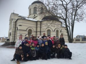 4 февраля ученики четвертого класса Климовской гимназии им. Подольских курсантов приехали на экскурсию в храм Иоанна Богослова в с. Сынково. Целый час ребята с большим вниманием слушали настоятеля храма протоиерея Александра Харламова, который рассказывал им о Боге, Православной вере, об истории и устройстве храма. У всех была возможность подняться на колокольню и полюбоваться окрестностью села. Затем все пили чай, играли на свежем воздухе и в конце экскурсии посетили конюшню при храме, где детей ждали чудесные лошади, на которых они смогли прокатиться и покормить. Добрым впечатлениям и восторгам детей не было предела.