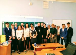 19 февраля настоятель Никольского храма г.Подольска священник Алексий Суриков, по приглашению учителя русского языка и литературы О.С.Корнеевой, посетил школу №35 г.Подольска, где побеседовал с учащимися 10-го класса. Темой беседы стало духовное осмысление произведения А.Н.Островского «Гроза».