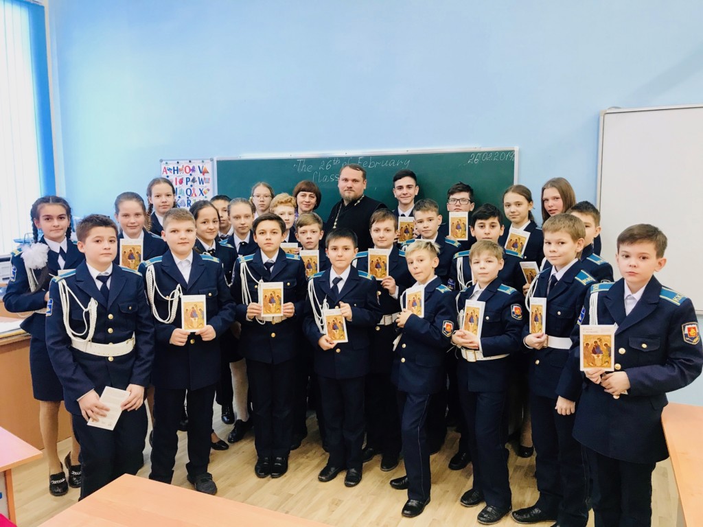 26 февраля настоятель Никольского храма г. Подольска священник Алексий Суриков посетил школу №35 г. Подольска, где для учащихся кадетского 5-го класса была проведена беседа на тему «Свобода и нравственность в жизни каждого человека». Юные кадеты также смогли задать свои вопросы священнику.